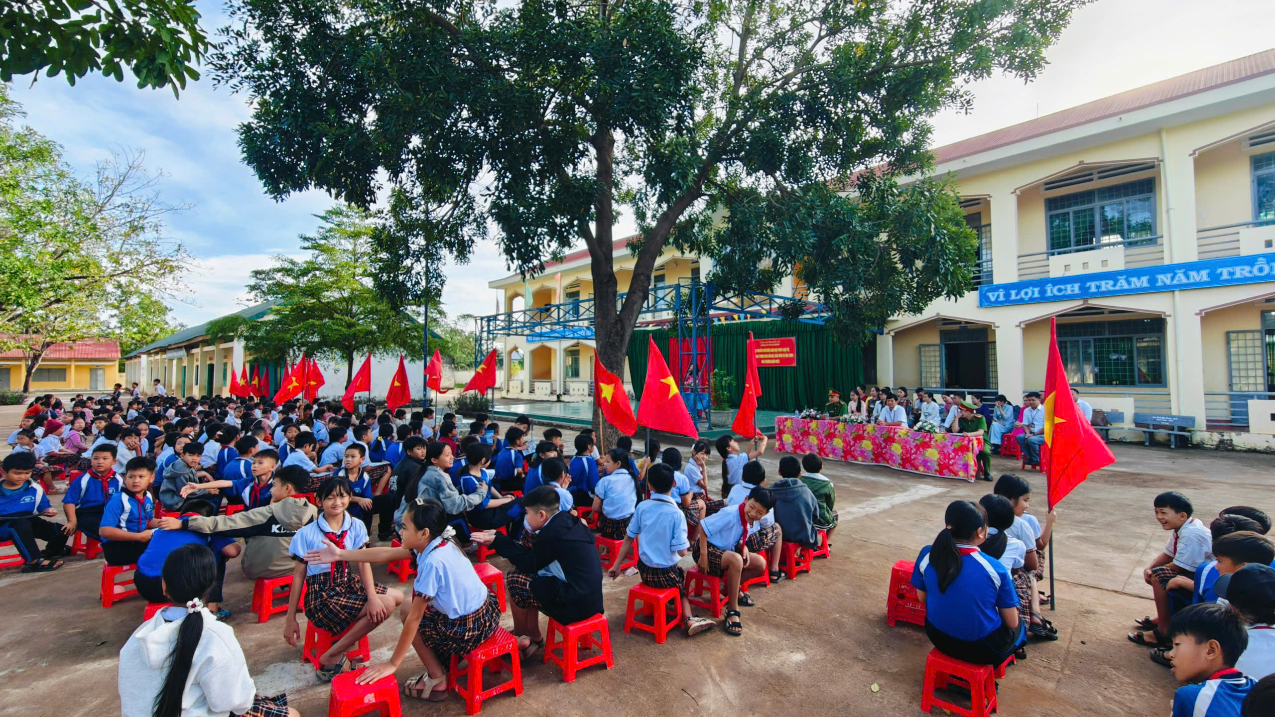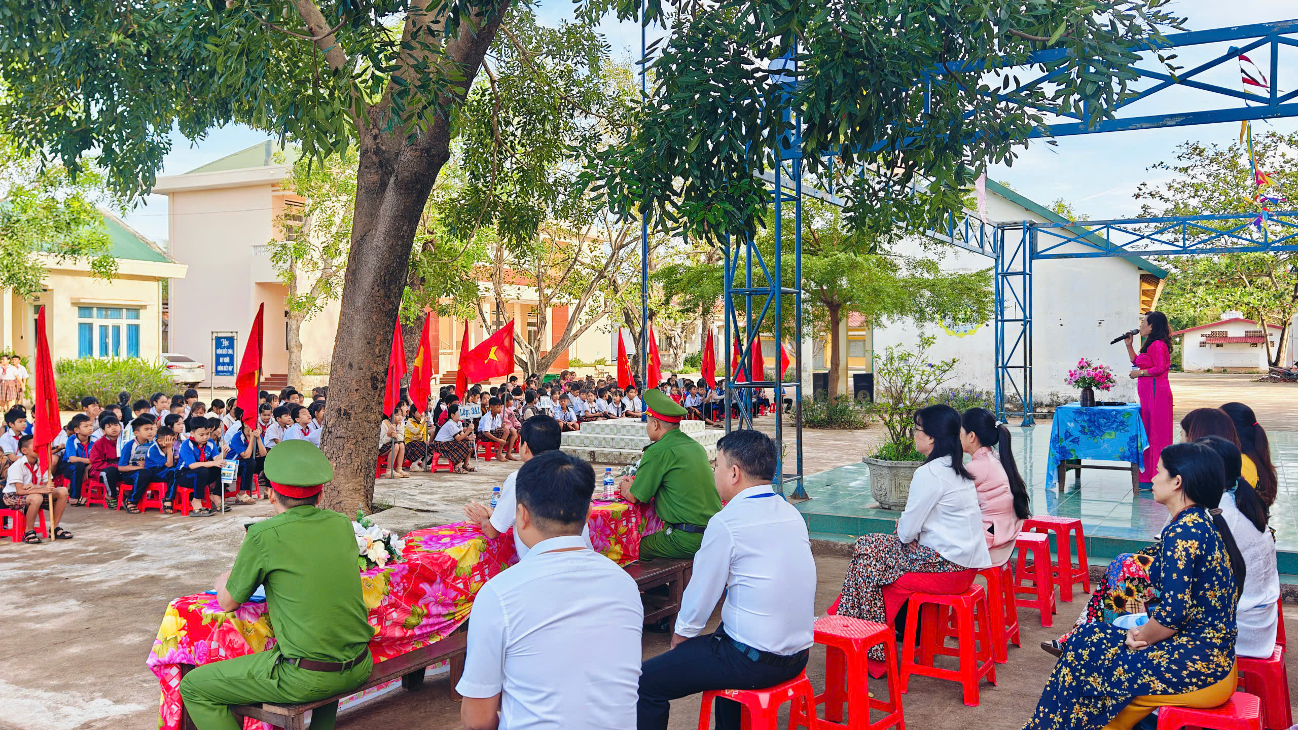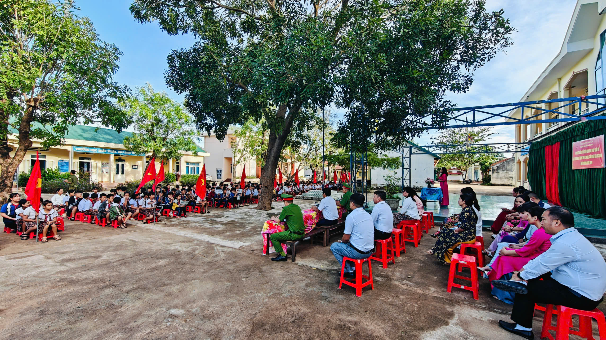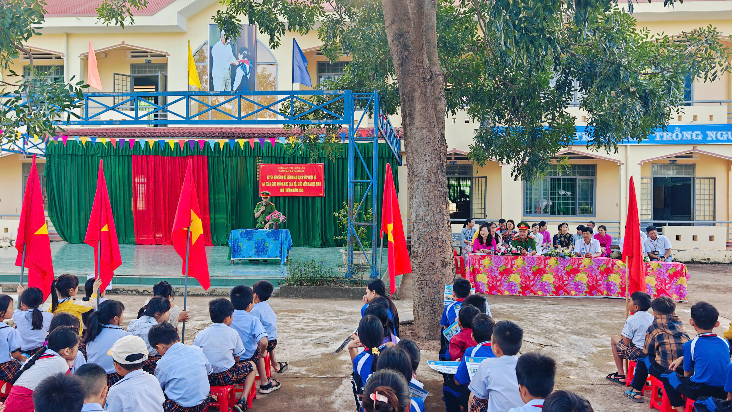Công an xã Ea Bung tổ chức Tuyên truyền phổ biến giáo dục pháp luật về an toàn giao thông cho cán bộ và giáo viên, học sinh nhà trường năm học 2025