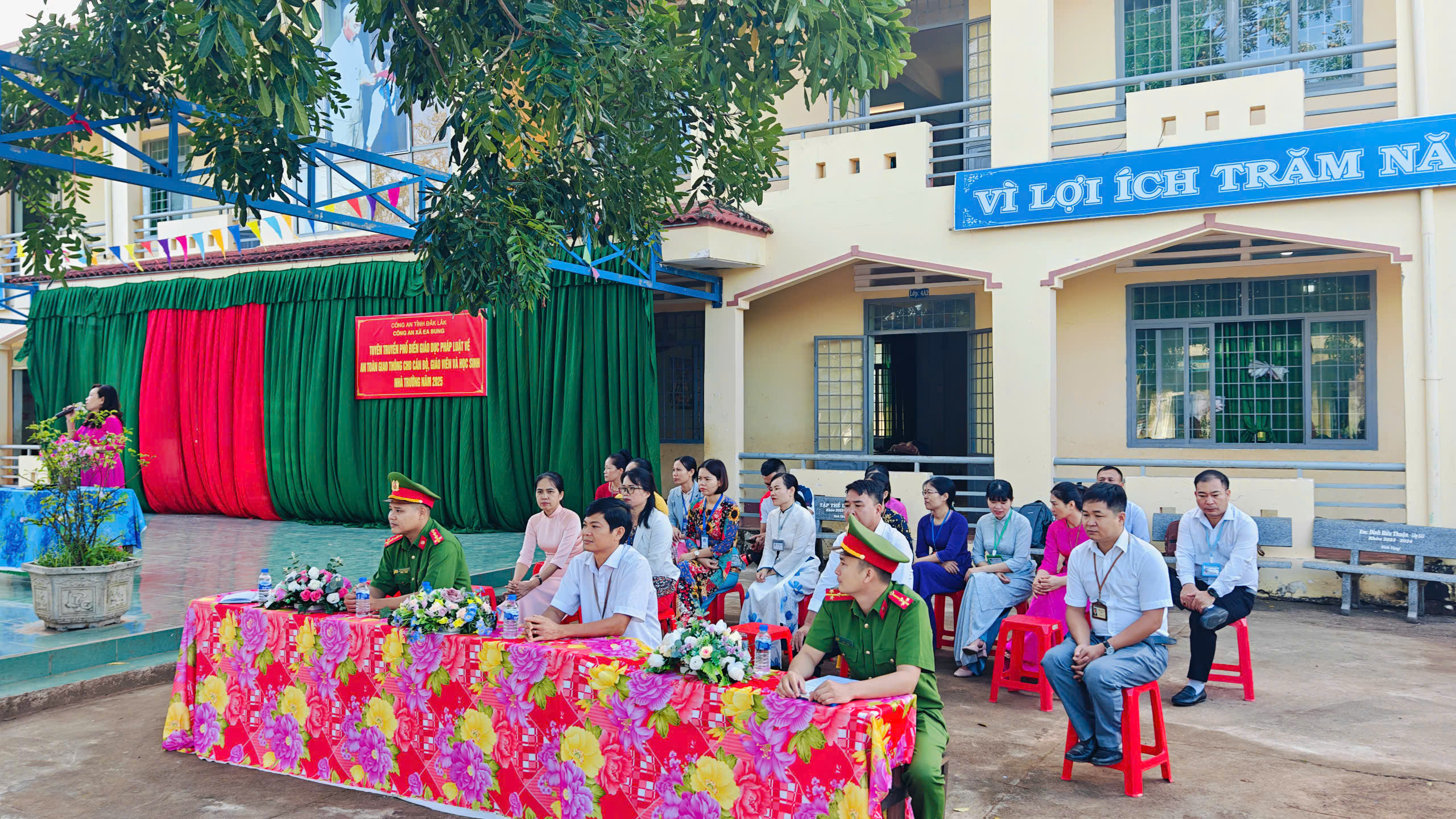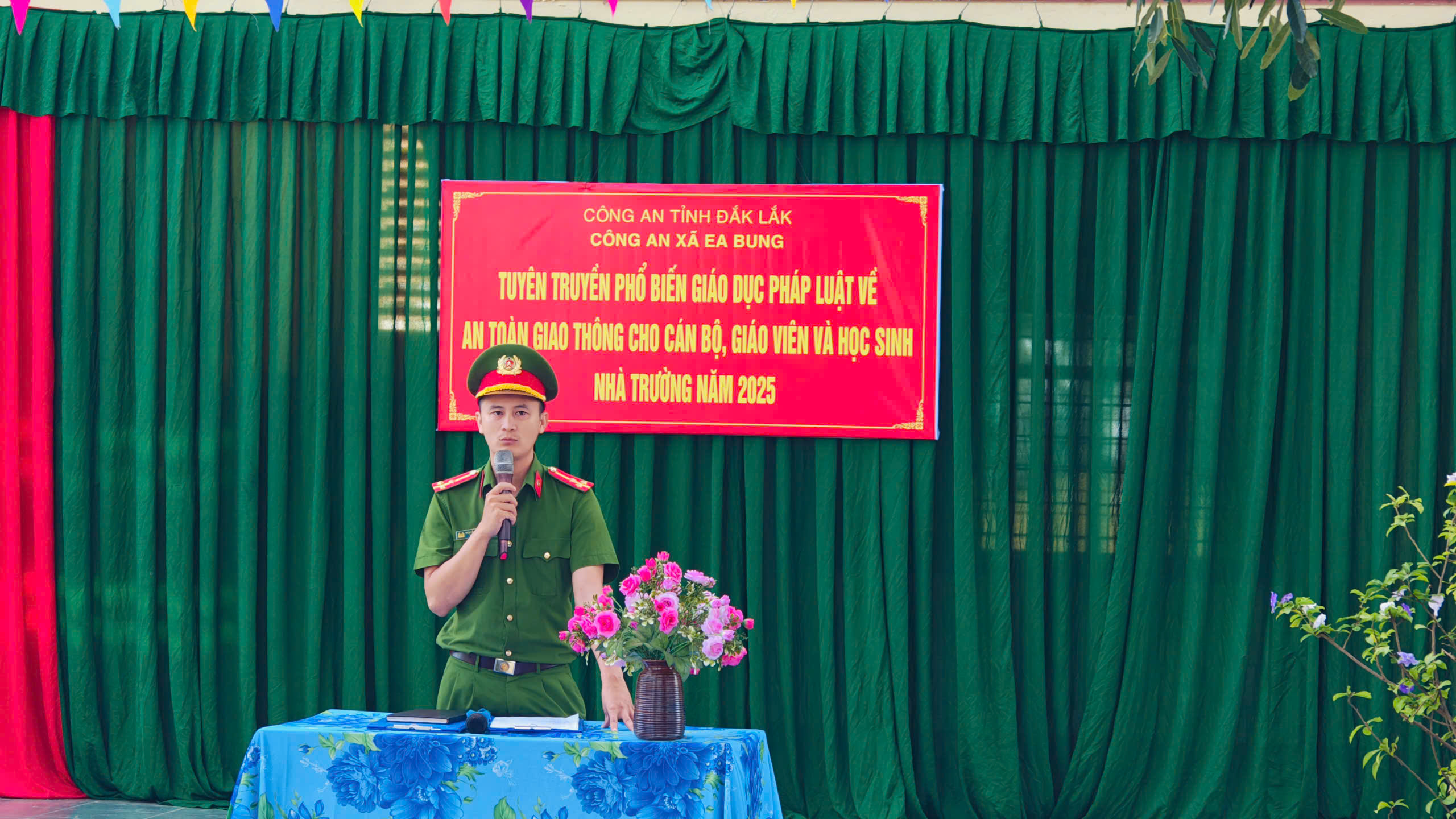 Công an xã Ea Bung về Tuyên truyền phổ biến giáo dục pháp luật về an toàn giao thông cho cán bộ và giáo viên, học sinh nhà trường năm học 2025